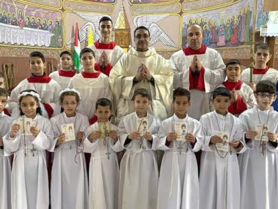 غزة- نبض الحياة: في عيد عماد الرب، منح الأب يوسف الكاهن المساعد في رعية اللاتين – غزة المناولة الأولى لثمانية أطفال بعد تحضيرهم واستعدادهم الجيد على الرغم من الحرب. وليست هذه المرة الأولى التي تُمنح بها الأسرار في كنيسة العائلة المقدسة، فقد مُنح سرّ العماد الأقدس أيضاً لطفل صغير منذ فترة.