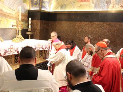 خميس الأسرار، هو عيد الكهنة، حيث جددوا أمام البطريرك الذي ترأس القداس والأساقفة المساعدين الوعود الكهنوتية. من قريب ومن بعيد، اجتمعوا كلهم نحو القبر المقدّس، حاملين في قلوبهم ونياتهم الصلاة من أجل أبناء رعاياهم، شاهدين لإيمانهم المليء بالرجاء رغم الظروف، متحدين في الجسم الكهنوتية مع سائر اخوتهم الكهنة.