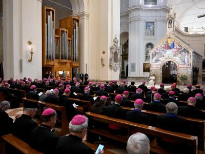 الفاتيكان - توجه البابا لاون الرابع عشر صباح الخميس إلى أسيزي حيث اختتم أعمال الجمعية العامة الحادية والثمانين لمجلس أساقفة إيطاليا الملتئمة في تلك المدينة منذ السابع عشر من الجاري. وبعد أن زار الحبر الأعظم ضريح القديس فرنسيس انتقل إلى بازيليك "القديسة مريم سيدة الملائكة" حيث كان له لقاء مع الأساقفة الإيطاليين.