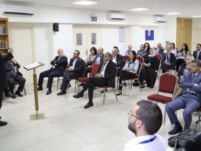 شارك الأب الدكتور همام خزوز، قاضي في المحكمة البدائيّة، بمحاضرة عن الأمور الدستورية والقانونية وعلاقتها بشؤون قضايا ضبط التركات الماليّة، الحجر والوصاية على القاصرين والبالغين وكيفية تعامل البنوك مع المذكرات القضائيّة الصادرة عن المحاكم المختلفة.