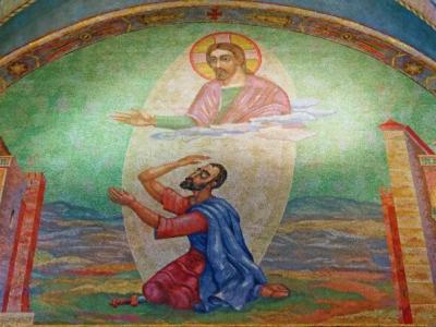 بولس الرسول، هو شاول، يهوديّ الأصل، من سبط بنيامين، وقد عُرِفَ باضطهاده الشديد للمسيحيين، ورأى استشهاد القديس إسطفانوس، أوّل الشهداء (أعمال الرسل 22: 20). وفي أحد الأيام، وبينما كان شاول ذاهبًا إلى دمشق حاملًا رسائل رؤساء اليهود لاضطهاد المسيحيين، «سطع بغتةً من حوله نور من السماء حتى سقط أرضًا، وسمع صوتًا يقول له: شاول، شاول! لماذا تضطهدني؟» (أعمال الرسل 9: 3-4). عندئذٍ، أحسّ شاول بالرعب لأنّه لم يفهم ماذا يحدث معه، لكنه بعدها أدرك الأمر، وتجلّى له بوضوح أنّ المسيح الذي يضطهده هو الملك الموعود به، هو من صُلِبَ ومات وقام من بين الأموات.