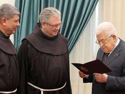 رام الله- نبض الحياة: تسلم رئيس دولة فلسطين محمود عباس، اليوم الثلاثاء، دعوة لحضور قداس عيد الميلاد المجيد وفق التقويم الغربي، من حارس الأراضي المقدسة الأب فرانشيسكو باتون، ونائب حارس الأراضي المقدسة الأب إبراهيم فلتس، وذلك بمقر الرئاسة في مدينة رام الله.