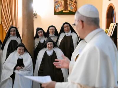 التقى الحبر الأعظم الراهبات واستذكر ثلاث كلمات من صميم دعوات الراهبات التأملية: التواضع والصلاة والتضحية. واختتم اللقاء بتلاوة الصلاة الربية، ومنح البابا الراهبات بركته الرسولية.