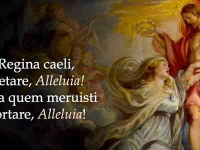 Acistampa - خلال الزمن الفصحي، أي من أحد عيد الفصح إلى أحد العنصرة، تحلّ هذه الترنيمة المريمية القديمة التي أنشأها البابا بنديكتوس الرابع عشر في عام 1742 محل صلاة التبشير الملائكي، وهي صلاة تتمحور حول التجسد.