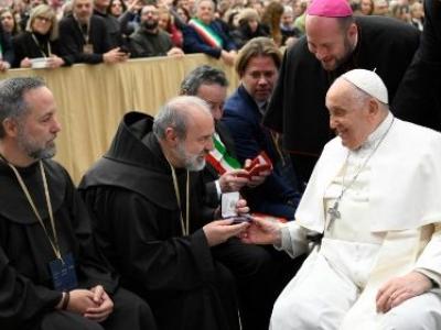استقبل البابا فرنسيس صباح السبت في قاعة بولس السادس مجموعة من المؤمنين القادمين من المنطقتين اللتين قدّمتا شجرة ومغارتي الميلاد الموضوعة في الساحة وفي القاعة الفاتيكانيتين ووجه لهم تحية تحدث فيها عن معنى مغارة الميلاد التي ينبغي أن توقظ بداخلنا الحنين إلى الصمت والصلاة. كما توقف الحبر الأعظم عند المآسي التي يعيشها اليوم سكان الأرض المقدسة، لافتا إلى أن الأطفال هم من يدفعون ثمن الحرب أكثر من سواهم.