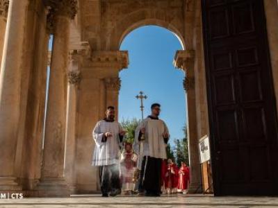 وفي التحية التي ألقاها عند بداية الاحتفال، أشار حارس الأرض المقدسة، الأب فرانشيسكو باتون، إلى أن الفكرة الأولية لحارس الأرض المقدسة في ذلك الوقت، الأب فرديناندو ديوتاليفي، كانت تتمثل في إعادة إعمار الكنيسة السابقة التي دمرها الأتراك.