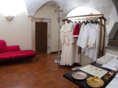 بمجرد انتخاب البابا، يُؤخذ إلى "غرفة الدموع"، وهي غرفة صغيرة بجوار كنيسة سيستين، حيث يرتدي الثياب البابويّة البيضاء لأوّل مرّة، قبل أن يطلّ من الشرفة المطلة على ساحة القديس بطرس لتحيّة الجماهير، ومنح بركته البابويّة الأولى.