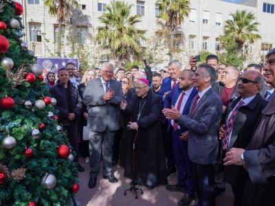 أبو ديس – نبض الحياة - احتفلت جامعة القدس أمس بإضاءة شجرة الميلاد في احتفال جمع شخصيات دينية ورسمية وأكاديمية، إلى جانب أسرة الجامعة من طلبة وموظفين، في فعالية نظّمتها عمادة شؤون الطلبة والطلبة المسيحيون إيذانًا ببدء موسم الاحتفالات بعيد الميلاد.