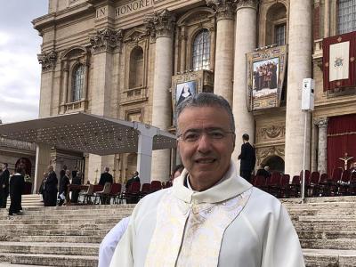وشدد الأب بعقليني في حديثه قائلًا: "كان هذا الاحتفال باهرًا وخشوعيًّا ومقدسًا ويُقدّس أيضَا، لأن الإنسان يستطيع أن يكون قديسًا سواء كان راهبًا أو راهبة وبالأخصّ علمانيًّا ملتزمًا بإيمانه ومحافظًا على الرجاء في حياته. اليوم تمجد فيه قديسون، وهنالك آخرون على درب القداسة، علينا أن نصلي من أجلهم ليبقوا نورًا وعلامة في هذا الشرق الذي يحتاج إلى إيمان وإلى تضامن الشعوب الأخرى التي تتفرج على موتنا وعلى عذابنا. لنا الرَبّ يسوع والروح القدس الذي يساعدنا للحفاظ على إيماننا النابع من يسوع المسيح الذي سكن أرضنا ومنطقتنا، ومنها، تحديدًا من الشام، انطلق مار بولس، هؤلاء العلمانيون الثلاثة استشهدوا كي يبقى يسوع المسيح في منطقتنا. اليوم، نصلي من أجل جميع الناس الذين طلبوا منا أن نذكرهم في هذا الاحتفال المهيب الذي شارك فيه كرادلة وأساقفة وكهنة وشمامسة ورهبان وعلمانيون وأقرباء القديسين الثلاثة، امتلأت بهم ساحات القديس بطرس في الفاتيكان ورفعت خلاله صور القديسين الجدد على مذابح الكنيسة الكاثوليكية، ومن خلالهم سنتمجد لأننا عرفنا كيف نكرّم الإنسان المضطهد والمعذب حتى يشفع معنا ومعهم. نصلي من أجل خلاص بلادنا وبلاد الشرق الأدني، ونطلب من الرب يسوع أن يرافق هذه الشعوب التي تناضل من أجل الحرية والديمقراطية ومن أجل الهوية والانتماء ومن أجل بقاء الإنسان معزّزًا ومكرّمًا في بلاده".