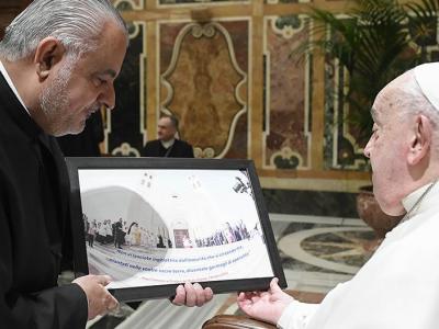 أبونا - التقى الأب رفعت بدر، مدير المركز الكاثوليكي للدراسات والإعلام، اليوم الاثنين، بالبابا فرنسيس، في القصر البابوي، وقدّم له لوحة عن تدشين كنيسة معموديّة السيّد المسيح الذي تمّ في العاشر من كانون الثاني الحالي، بحضور الكاردينال بييترو بارولين ممثلاً عن قداسة البابا.