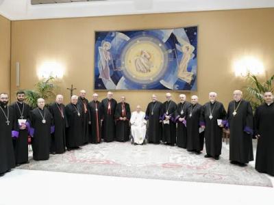 وتوجّه فرنسيس للأساقفة معتبرًا إيّاهم شهودًا على نور المسيح الذي جلبه القديس غريغوريوس المنوَّر للشعب الأرمني. ودعاهم إلى توخي الحرص في انتخاب الأساقفة ورعاية الإكليريكيّين. كما سألهم جعل الصلاة والحفاظ على نظامهم الكنسي الداخلي أولوية.