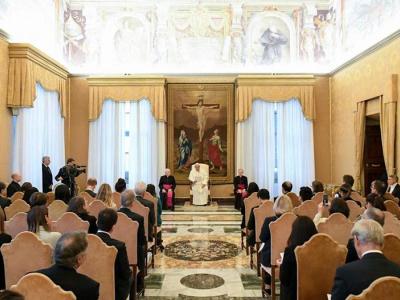 ووجه البابا كلمة للمناسبة حيّا فيها جميع الحاضرين وعبّر عن تقديره لالتزامهم بتعزيز كرامة وحقوق الأشخاص ذوي الإعاقة، وأشار إلى لقاء يشكل علامة ملموسة على الرغبة في بناء عالم أكثر عدلاً وادماجًا يتمكن فيه كل شخص من خلال قدراته الخاصة من الإسهام في نمو المجتمع.