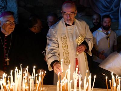 وفي ختام الصلاة توجه الجميع نحو صورة السيد المسيح وحوله الأطفال، حيث وضعت الشموع، مرتلين الصلاة الرّبية ومنح البركة من صاحب الغبطة.