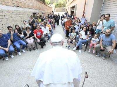 الفاتيكان - التقى قداسة البابا فرنسيس عصر الخميس السادس من حزيران يونيو زهاء ثلاثين عائلة من رعية القديسة بريجيدا السويدية، وجرى اللقاء بالقرب من مرآب مجمّع سكني في حيّ بالمارولا بضواحي روما، ذلك في إطار سلسلة لقاءات "مدرسة الصلاة" خلال هذه السنة المخصصة للصلاة استعدادا ليوبيل العام ٢٠٢٥، وتحدث الأب الأقدس عن أهمية حماية العائلة مجيبًا على أسئلة الحاضرين.