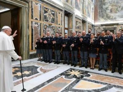 ثم أراد البابا فرنسيس التذكير بما قال البابا القديس يوحنا الثالث والعشرون حول عمل عناصر الأمن حيث وصفه بمهمة شاقة تستدعي صفات أخلاقية هامة، وفي المقام الأول التفاني وتكريس الذات من أجل الخير العام. وتابع الأب الأقدس أن هذا ما دفع البابا القديس إلى وصف عناصر الامن بخدام صالحين للجماعة البشرية وصناع سلام في المجتمع. وأضاف البابا فرنسيس أن هذه كلمات غنية بالمعاني تُعبِّر بشكل جيد عما يُنتظر من عناصر الأمن من جهة وعن المُثل التي يستلهمون منها من جهة أخرى. وشدد قداسته على أن الخير العام والسلام في المجتمع لا يتحققان ولا يزدهران بصورة تلقائية دائما، وتحدَّث بالتالي عن أن طبيعة الإنسان المحدودة والتي تجرحها الخطيئة تتطلب، بنورها وظلالها، ضرورة أن يكون هناك مَن لا يظل مجرد مشاهد أمام الشر بل يتحمل مسؤولية التدخل من أجل حماية الضحايا وإعادة المخالفين إلى النظام، وذلك مع الاهتمام دائما بخير الجميع.