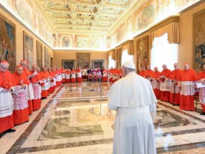 روما - رومي الهبر - اسي مينا - ترأس البابا فرنسيس في قاعة الكونسيستوار بالقصر الرسولي-الفاتيكان أمس، صلاة الساعة الثالثة والكونسيستوار العام العادي لإعلان الموافقة على قداسة بعض الطوباويين، ومن أشهرهم كارلو أكوتيس.