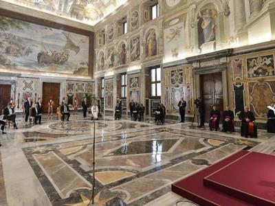 ثم أعرب البابا فرنسيس في كلمته إلى السفراء الجدد عن تثمين الدور الهام الذي يقوم به السفراء، وهو ما يؤكده الكرسي الرسولي من خلال التزامه الدبلوماسي على الأصعدة الثنائية ومتعددة الأطراف. وأضاف قداسته أن الكرسي الرسولي، وفي تماشٍ مع طبيعته ورسالته الخاصة، يلتزم بحماية كرامة كل شخص والتي لا يمكن المساس بها، وبتعزيز الخير العام والأخوّة بين جميع الشعوب. وأضاف أن هذه الجهود، والتي لا تنطلق من أهداف سياسية أو تجارية أو عسكرية، يتم القيام بها من خلال حيادية إيجابية لا حيادية أخلاقية فقط وخاصة أمام المعاناة البشرية، وهذا يمنح الكرسي الرسولي وضعا محددا في الجماعة الدولية يمَكنه من أن يساهم بشكل أفضل في حل النزاعات وفي قضايا أخرى.