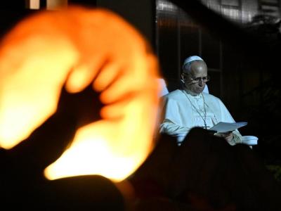 تابع الاب الاقدس أصدقائي الأعزاء، مريم، والدة الإله وأمنا، تتألق بين جميع القديسين بصفتها الكلية القداسة. يحمل العديد من الشباب المسبحة معهم في كل الأوقات، إما في جيوبهم، أو على معصمهم، أو حول أعناقهم. كم هو جميل أن ننظر إلى يسوع من خلال عيني قلب مريم! حتى من هنا، حيث نحن الآن، كم هو عذب أن نرفع نظرنا إلى سيدة لبنان بالأمل والثقة!