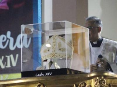 في رعيّة القدّيس يوسف العامل المزدحمة، تحديداً في “لا فيكتوريا” في مقاطعة تشيكلايو، تُعرض الآن في علبة زجاجيّة قطعة، يتوقّع قلّة من الكاثوليك رؤيتها خارج روما: التاج البابويّ الخاصّ بالبابا لاون الرّابع عشر.