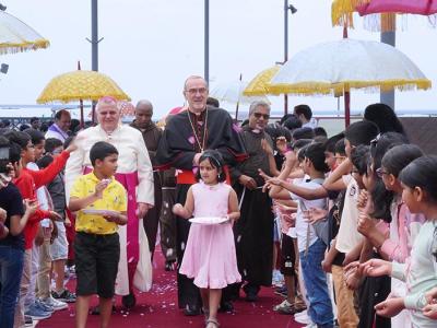 وفي عظته، أكد الكاردينال بيتسابالا على أهميّة الإيمان والوحدة والمثابرة في الحياة المسيحية، وخاصةً لسكان الشرق الأوسط. كما تحدّث عن التنوع الغني للكنيسة الكاثوليكيّة، مسلطًا الضوء على كيفية تجسيد هذا التنوّع في طقوس الكنيسة في البحرين. وأشار إلى أن وحدة الإيمان، رغم اختلاف اللغة والثقافة، دليل على قوة الكنيسة الجامعة وجمالها. وشجّع نيافته المؤمنين على مواصلة تعزيز روح الشركة هذه، مذكرًا إياهم بأنّ رسالة الكنيسة هي أن تكون علامة للسلام والحوار والمحبّة في العالم.
