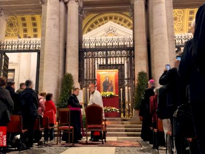 إنها الأمسية الرابعة على التوالي التي يتجمع فيها الحجاج والمؤمنون في المدينة الخالدة ليرفعوا الصلوات عن راحة نفس البابا فرنسيس، الذي وافته المنية في الحادي والعشرين من الجاري، يوم اثنين الفصح. وقد قرر البابا برغوليو، خلافاً للعرف المتبع من قبل سلفائه، أن يُدفن في هذه البازيليك الرومانية حيث توجد أيقونة العذراء، "خلاص الشعب الروماني"، وهي أيقونة بيزنطية يروي التقليد أن من كتبها هو القديس لوقا الإنجيل! ويحصل هذا في وقت يستعد فيه هذا الصرح الهام لاستقبال رفات البابا، هذا السبت في أعقاب الجنازة في ساحة القديس بطرس بالفاتيكان، مع العلم أن الحبر الأعظم الراحل قام بزيارة بازيليك القديسة مريم الكبرى قبل أيام قليلة على وفاته.