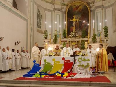 وتطرّق المطران لوراتي في عظته إلى المعاني والرموز التي تحملها فقرات هذا الاحتفال مثل الحج والصليب الذي هو المصدر الوحيد لرجائنا، ومعاني شعار اليوبيل، كما أكد على البعد الاخوي والعائلي للمسيرة اليوبيلية مشجعًا الجميع على مواصلة المسير نحو المسيح ميناء الخلاص.