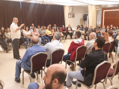 وفسّر أنّ «في الحلقة يطرح كلّ شخص رأيه متجنّبًا الإطالة ومن دون جدل مع احترامٍ كامل لرأيه. ويبدأ اللقاء دائمًا بصلاة واستدعاء الروح القدس، كما تتخلّله أوقات من الصمت وقراءة مقطع من الإنجيل. وتوزَّع نصوص على المشاركين تغطّي أربعة محاور هي الكنيسة والمجتمع، ودور العلماني في الكنيسة، والتعليم المسيحي، والعائلة».