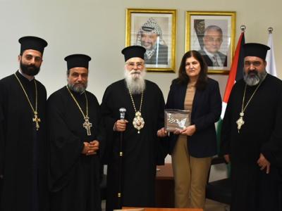 رام الله - استقبلت وزيرة الدولة لشؤون وزارة الخارجية والمغتربين فارسين أغابيكيان شاهين، أمس الثلاثاء، ممثل بطريركية القدس في جمهورية قبرص المطران تيموثاوس، والأب إلياس عواد، والأب عمانويل عواد، والأب أشعياء حداد، إذ تم التطرق إلى انتهاكات الاحتلال الجسيمة وغير المسبوقة في حرب الإبادة الجماعية على قطاع غزة، وتصاعد جرائم المستعمرين وتضييقات الاحتلال على الضفة الغربية.