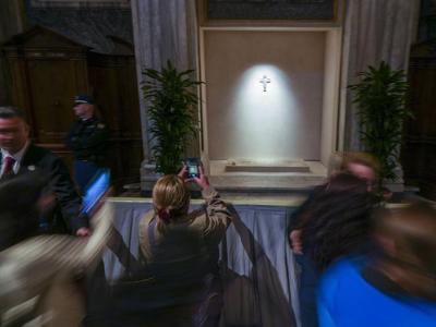 فتحت بازيليك القديسة مريم الكبرى، في العاصمة الإيطاليّة روما، أبوابها الأحد 27 نيسان 2025، أمام المؤمنين لزيارة قبر الراحل البابا فرنسيس الذي توفي عن 88 عامًا، ودفن فيها السبت إثر مراسم جنازة مهيبة حضرها مئات الآلاف.