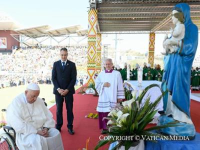 الأردن - كارول علمات - مع البابا فرنسيس، أمام عذراء المعونة، في بابوا غينيا الجديدة، نقف نحن أيضًا وبالأخص في هذا الصباح.