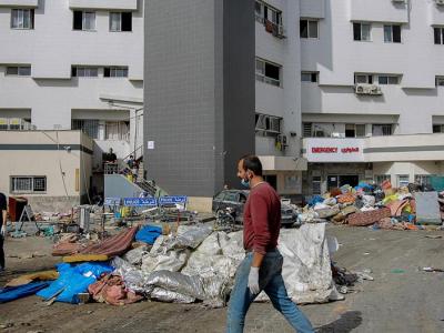 ويحتمي 30 ألف غزّي على الأقلّ داخل المجمّع الطبّي الذي أخلي من جميع المرضى تقريبًا بعدما اقتحمه الجيش الإسرائيلي في 15 تشرين الثاني ونفّذ فيه عمليات عسكرية استمرت أياماً عدّة. وتعرّضت المستشفيات، المحمية بموجب القانون الإنساني الدولي، لقصف إسرائيلي مرات عدة في قطاع غزة منذ بدء الحرب مع حماس إثر الهجوم غير المسبوق للحركة الفلسطينية على الأراضي الإسرائيلية في 7 تشرين الأول.