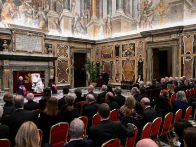 أضاف الحبر الأعظم يقول تدعم مؤسستكم الحرس بطرق ومجالات مختلفة: في المقام الأول، هي تعمل من أجل العائلات، لاسيما فيما يتعلق بتعليم وتنشئة الأبناء في المؤسسات التعليمية المناسبة. وقد أصبح هذا الجانب أكثر أهمية، نظرًا لزيادة عدد الحراس المتزوجين، وكون خير العائلات أساسيًا للكنيسة والمجتمع. بالإضافة إلى ذلك، توفر المؤسسة الوسائل اللازمة لضمان وتحسين وتحديث الكفاءة المهنية وأساليب العمل والمعدات والبنى التحتية. وأخيرًا، أنتم تقدمون دعمًا قيمًا لجميع الذين يعودون إلى وطنهم بعد انتهاء خدمتهم في الفاتيكان. جميع هذه الأمور هي ضرورية لكي يتمكن الحراس من أداء خدمتهم الثمينة بأقصى فعالية ولصالح الجميع.