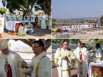 أقيم الاحتفال الإفخارستي، الذي ترأسه حارس الأرض المقدسة، الأب فرانشيسكو باتون، بحضور الرهبان المقيمين في الجليل والراهبات وبعض المؤمنين المحليين. كما وشارك في القداس الاحتفالي صاحب السيادة المونسينيور ماريانو مانزانا، من ترينتو، الذي شغل منصب أسقف موسورو في ولاية ريو غراندي دو نورتي (البرازيل) لمدة 20 عامًا، وقد جاء اليوم حاجًا إلى الأرض المقدسة.