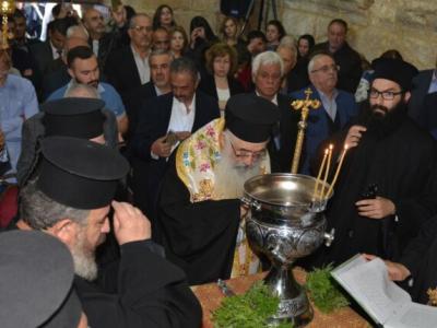 بحضور لفيف من الأباء الكهنة وأبناء الرعية.في البداية تم قص شريط افتتاح الكنيسة ثم سار الجميع على وقع معزوفات كشافة ومرشدات كاتدرائية دخول السيد الى الهيكل نحو الكنيسة مكرساً سيادته الكنيسة بالماء المقدس ، وأشعل القنديل الأول فيها بعد انتهاء أعمال الترميم.