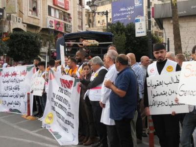 في رام الله، أطلقت الإغاثة الطبية ونقابة الأطباء خلال مسيرة، أمس الأحد، صرخة للعالم لوقف العدوان والقتل بحق المواطنين والكوادر الطبية.