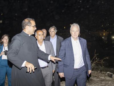 كما شملت الجولة زيارة كنيسة الخضر الأثرية، التي حاول مستوطنون إحراق محيطها، في مشهد يبرز هشاشة الوضع الأمني الذي يعيشه المسيحيون والمسلمون على حد سواء.