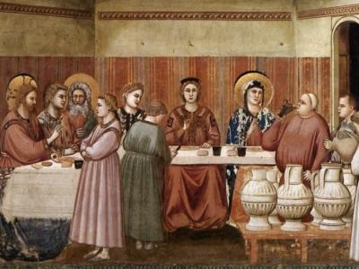 اليوم نرى يسوع في وليمة عرس (يوحنا 2: 1-11)، حاضرًا كإنسان عادي وبسيط بين المدعوين، دون أن يظهر أي علامة تميّزه عن بقية الضيوف.