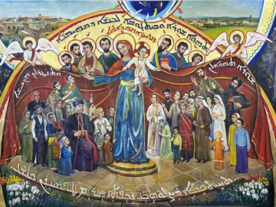 وتابع: «مريم هي رمز الكنيسة، رافقت أبناءها في النزوح وفي مسيرة العودة. لذا فالأيقونة الرئيسة لهذه الكنيسة تمثِّل صورة أمِّنا مريم العذراء الباسطة رداءها لتحتضن كلّ أبناء سهل نينوى وتحميهم من قوى الظلام التي حاولت محو وجودهم واقتلاعهم من أرض آبائهم وأجدادهم».