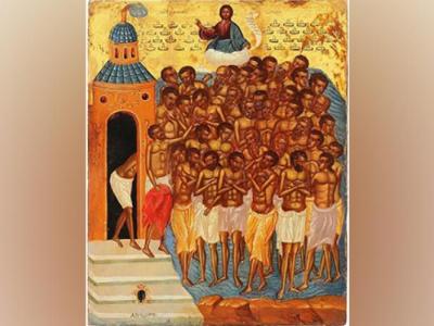 غير انه، لشدة البرد فرغ صبر أحدهم، فخرج من الماء ودخل حمامًا، فخارت قواه ومات. فحزن الشهداء لكنهم تشددوا بالصلاة والعون الإلهي. وبغتةً رأى أحد الحراس نورًا ساطعًا وإذا بملائكة يحملون اكاليل المجد ليضعوها على رؤوس التسعة والثلاثين شهيدًا، فدهش من هذا المشهد العجيب وحركت النعمة قلبه، فصرخ برفاقه وأعلن إيمانه قائلاً: أنا مسيحي! أنا مسيحي "بالإيمان قوام الأمور التي تُرجى وبرهان الحقائق التي لا تُرى" (الرسالة إلى العبرانيين ١١: ١). ورمى ذاته في الماء. فنال الإكليل الذي خسره ذاك الجبان المسكين. فأصبح الشهداء، كما تمنَّوا، اربعين شهيدًا.