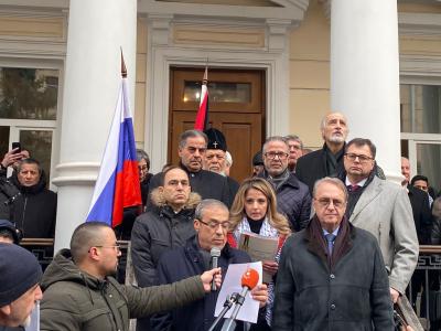 ونقل سفير دولة فلسطين لدى روسيا الاتحادية عبد الحفيظ نوفل، تحيات الرئيس محمود عباس للحضور والمشاركين في الوقفة التضامنية، مؤكدًا أن المشاركة الواسعة من المتضامنين الروس مع شعبنا، رسالة مهمة تؤكد أن روسيا الصديقة حكومة وشعبا، تدعم حقوق شعبنا وعدالة قضيته .