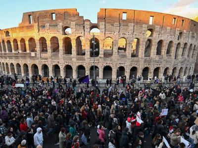في إيطاليا، تظاهر نحو 50 ألف شخص حيث أضيء مبنى الكولوسيوم التاريخي باللون الأحمر.