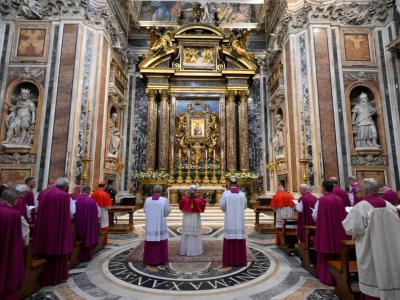الفاتيكان - في ختام يومه الأول كأسقف لروما، اختار البابا أن يضع خدمته بين يدي العذراء، فتوجّه إلى بازيليك القديسة مريم الكبرى في قلب العاصمة الإيطالية، حيث سجد بخشوع أمام أيقونة العذراء "خلاص الشعب الروماني – Salus Populi Romani" وترأس وقفة صلاة قصيرة أمام الأيقونة التي لطالما كانت ملجأ لأبناء المدينة وزوّارها، ورفع إليها صلاة شخصية مُفعمة بالمناجاة والثقة، قال فيها: أيتها الكليّة الطهارة، المبجّلة بكلّ كرامة، أنتِ أسمى تقدمة يمكن للبشريّة أن تقدّمها لله، عذراءَ أمّ، وأمٌّ دائمة البتوليّة، تضرّعي لأجلنا لدى ابنكِ بشفاعةٍ والديّة!