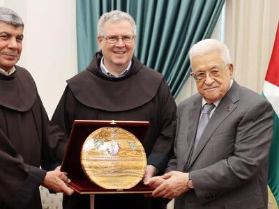 رام الله - خلال استقباله حارس الأراضي المقدسة الأب فرانشيسكو باتون، ونائب حارس الأراضي المقدسة الأب إبراهيم فلتس، تسلم الرئيس الفلسطيني محمود عباس، الأربعاء، دعوة لحضور قداس عشية عيد الميلاد المجيد، ليلة 24 كانون الأوّل المقبل، في كنيسة القديسة كاترينا المحاذية لكنيسة المهد في بيت لحم.