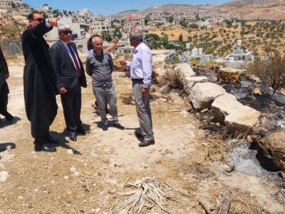 وتخللت الزيارة جولة ميدانية شملت موقع مقبرة البلدة وكنيسة الخضر الأثرية، حيث لا تزال آثار الحريق المتعمّد ماثلة للعيان، وهو الحريق الذي اندلع على مقربة من الكنيسة والمقبرة وكاد أن يتسبب بكارثة، لولا تدخل الأهالي وطواقم الإطفاء في اللحظة الأخيرة.