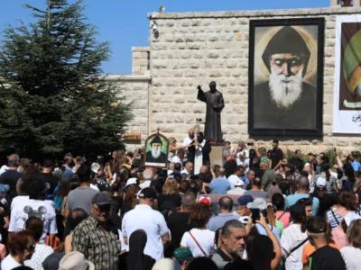 عنايا - مارغريتا كلّاسي - آسي مينا - احتشد مئات المؤمنين أمس في دير مار مارون عنّايا-لبنان، موقع ضريح القديس شربل ومحبسته، للمشاركة في زياح القربان المقدّس. ومنذ الساعة السادسة فجرًا، ازدحمت جميع الطرق المؤدية إلى الدير بطوابير السيارات والحافلات.