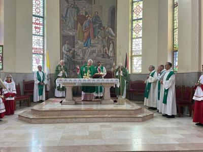 جاء ذلك خلال كرازته في قداس الأحد الذي ترأسه في كنيسة المسيح الفادي للاتين في الطيبة، ضمن زيارة تضامنية تعكس التزام الكنيسة الكاثوليكية بدعم السلام والعدالة في المنطقة، في ظل الأوضاع الصعبة التي يعيشها الفلسطينيون، وكرسالة أمل وتضامن مع الجماعة المسيحية في الأرض المقدسة.
