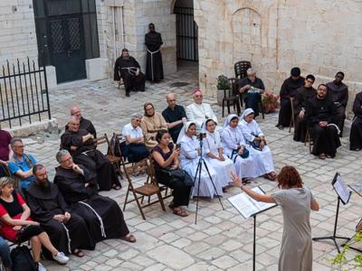 حراسة الأراضي المقدسة - كلمات الحاجة إيجيريا، التي وصلت إلى الأرض المقدسة في نهاية القرن الرابع، يتردد صداها مرة أخرى تحت سماء القدس في أمسية دافئة في أوائل الصيف. أقيم الحدث الثقافي بعنوان "صوت إيجيريا" يوم الخميس 20 حزيران، في ساحة القديسة هيلانة في دير المخلص الفرنسيسكاني، حيث تمت قراءة مقاطع مختارة من كتاب Itinerarium Egeriae (مذكرات Egeria) بمرافقة مقطوعات موسيقية.